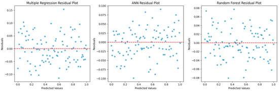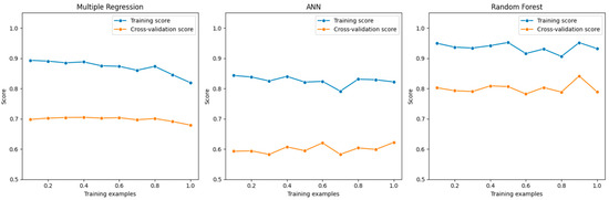 In this study, we evaluated the predictive performance of the Multiple Linear Regression (MLR), Artificial Neural Networks (ANN), and Random Forest (RF) models using three key statistical metrics: Mean Absolute Error (MAE), Root Mean Squared Error (RMSE), and the coefficient of determination (R2 score). Each of these metrics provides a different perspective on the performance of the models and, collectively, they give a holistic view of the model’s prediction accuracy, consistency, and reliability (Table 2 and Table 3).