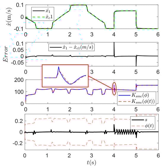 SMC for human-leading, where Equation (11) is selected as the sliding surface.