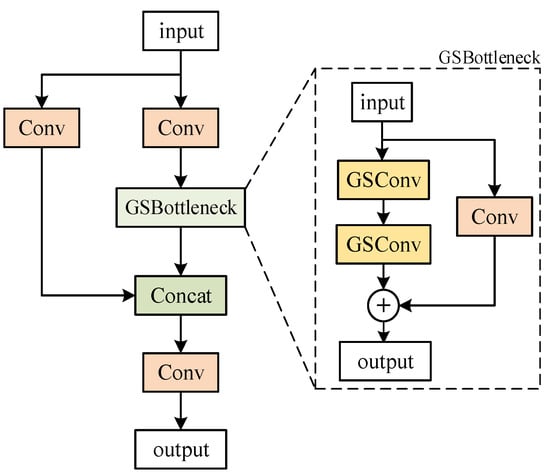 GSConv is a lightweight convolutional approach, which reduces the amount of computation while maintaining a similar output to the ordinary convolution. The authors of Slim-neck designed a VoV-GSCSP structure with reference to VoVnet, GSConv and CSPnet [24], which improves the recognition efficiency and meets the real-time requirements in the field of coal gangue sorting.