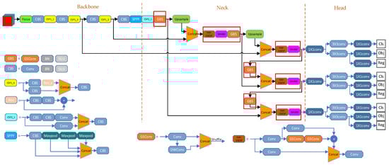 Due to the improvement in the Neck section making it more lightweight, mentioned above, the number of parameters in the Neck section of the network was reduced. Slim-neck was constructed to improve the network’s ability to analyze global features, increase the receptive field and improve the detection speed.