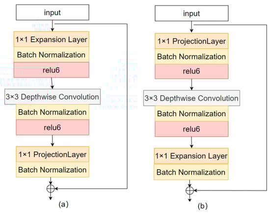 Differences in the two blocks. (a) The structure of an inverted residual block and (b) residual block.