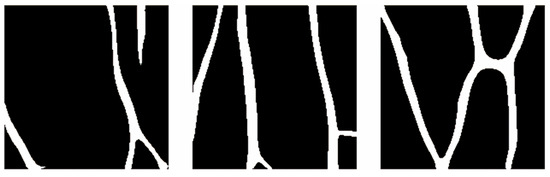 In order to train the neural network with the gathered images, it is imperative to generate suitable labels for the dataset. First, we must select different thresholds for each image to make coarse binary images. Then, the binary images are used as a mask for manually segmenting the veins, removing the veins that are too thin to be injected. The labels can be viewed in Figure 9.