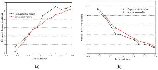Comparison of displacement data of 2# columns: (a) horizontal displacement; (b) vertical displacement.