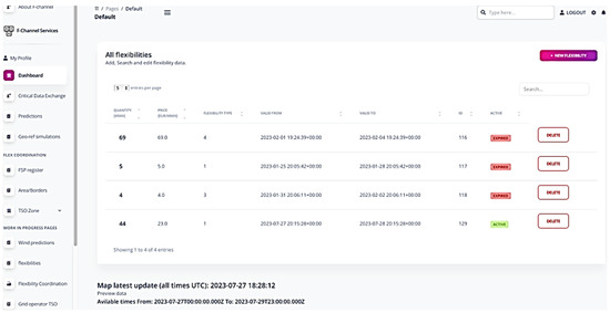 Τhe F-channel platform is envisaged as the web-based client server application that will contribute to enhancing active power management for TSO–DSO coordination by using artificial intelligence methods and cloud calculation engines. In order to achieve this, however, certain preconditions needed to be met, with the first of them being the availability of the detailed climatic data models. The luxury of having these models at hand opened the possibility of predicting the various parameters relevant from the SO point of view. For instance, predictions of wind speeds and insolation patterns with a rather high resolution gave the chance to adapt the AI algorithms to connect those predictions with the behavior of the generation units in the system in the way that has never been seen before. Along with that, the forecasts of the demand power and the occurrences of conductor icing and storms that could harm the reliability of the system operation are also noteworthy. All of these can be seen as the ideas behind the enhancements and advancements that were introduced in the Flexibility channel. Additionally, implementing a project can be difficult when it comes to navigating the regulations and policies in force for new technologies [45].