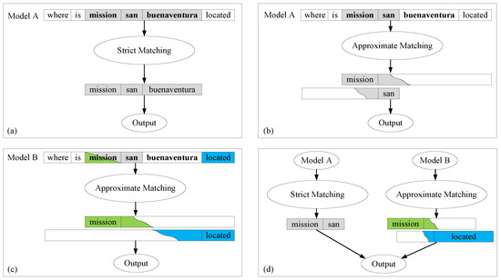 In addition, as different NER models could recognize different entities to the same question, an integrated method could also be employed as shown in Figure 1d, which is our proposed model. In this model, a flat NER model (Model A) is employed to find the strictly matched subject first. If it fails, another nested NER model (Model B) will be employed to find the approximately matched subject.