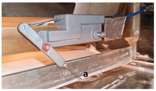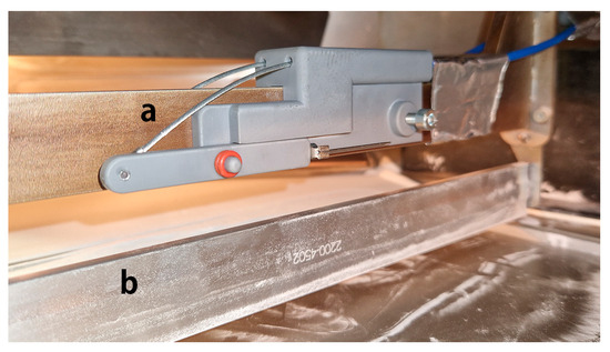 Based on these findings, a mechanical assembly was developed that is mounted on the coater blade and can be activated externally outside the machine. In order not to damage the machine, the activation of this defect simulation could only take place when the coater blade was in a certain area of the powder bed. To define the end positions of the coating blade, two limit switches have been fitted to the actuator cylinder inside the machine, as shown in Figure 4.