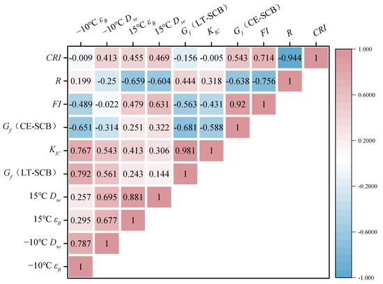 - The 15 °C BBT had a poor correlation with other tests. The correlation coefficients between their parameters were mainly less than 0.5, indicating that the flexural fatigue resistance of the asphalt mixture at room temperature was different from other types of cracking resistance.