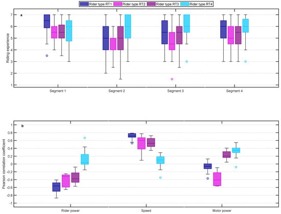 by sections per rider type (a). Boxplots of Pearson correlation coefficients of the riding experience