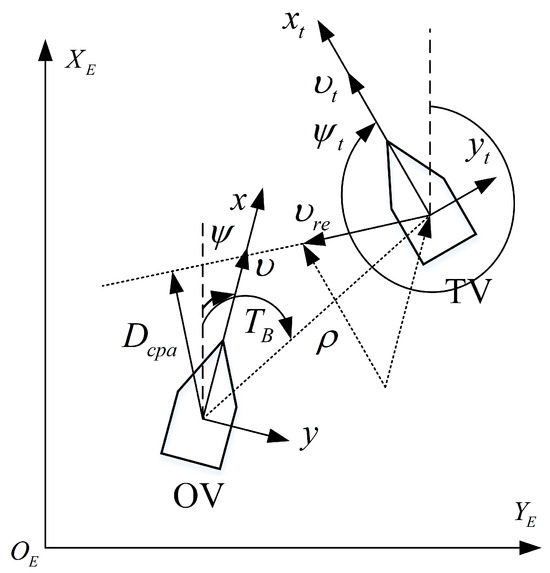 where represents the smallest safe encounter distance between OV and TV, and denotes the minimum distance between the own ship and the target ship, .