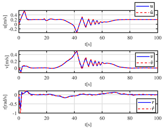 To deal with model uncertainty and external disturbances, passive and active approaches are both designed for vessels. The active approach incorporates an adaptive observer-exploit estimation of the unknown item to indemnify these effects, and the passive approaches depend on the designed controller’s robustness [10,11,12,13]. To ensure control performance and decrease the difficulty of controller design, the active approach is usually preferred to the passive approaches. A global robust controller combined with an adaptive observer is superior when solving the dynamic positioning control of surface vessels [14]. The observer is based on velocity measurements, which can not only increase the cost of the system but also restrict the range of applications. To avoid this, an observer is employed to approximate velocity and disturbances in [15,16]. Nevertheless, the observer requires prior knowledge of disturbances. To avoid this problem, an extended state observer (ESO) is developed for a dynamically positioned vessel in [17]. The observer can estimate velocities, model uncertainty, and external disturbances without using velocity measurements.