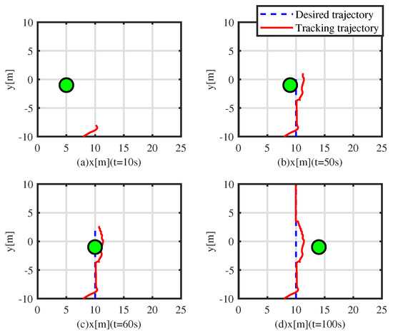 Apart from the prescribed performance, the collision avoidance must be considered. An efficient collision-avoidance algorithm can enhance navigation safety. Using a path planning algorithm is one of the most popular methods [27]. The method is limited by optimization strategies; it takes a lot of time to obtain an available solution. The existing path-planning algorithms have not been able to effectively deal with complex traffic environments, and it is sometimes impossible to obtain a feasible solution within a feasible time. To solve this, some researchers have designed collision-avoidance control systems for vessels [28,29]. Ref. [30] introduces a collision-avoidance function for a recursive control design, in which dynamic obstacles can be avoided through the control design. However, input constraints are neglected in the controller design process, which has a great impact on the collision-avoidance ability. To get around this, Ref. [31] proposes a new control strategy combined with modified artificial potential functions for dynamically positioned vessels with input saturation.