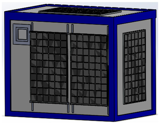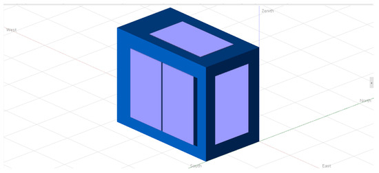In this study, the aim was to evaluate the performance of BIPV systems under the meteorological conditions of Şanlıurfa. The experimental setup was established at Harran University’s GAP-YENEV Research and Application Center. The design of the PV panels and the experimental setup is shown in Figure 1. The width, length, and height of the building structure where the experimental setup was located were 1.98 m, 2.96 m, and 2.45 m, respectively. The BIPV experimental setup shown in Figure 1 was designed to determine the electrical energy that can be generated from three different facades, namely east, roof, and south. There are a total of four PV panels in the BIPV system.