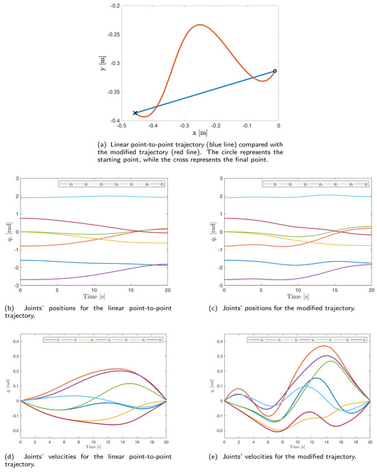 - “Move End-Effector” sends the command to the ROS node to calculate a linear trajectory for the end-effector moving from the current position to the target one (see Section 5.4);
