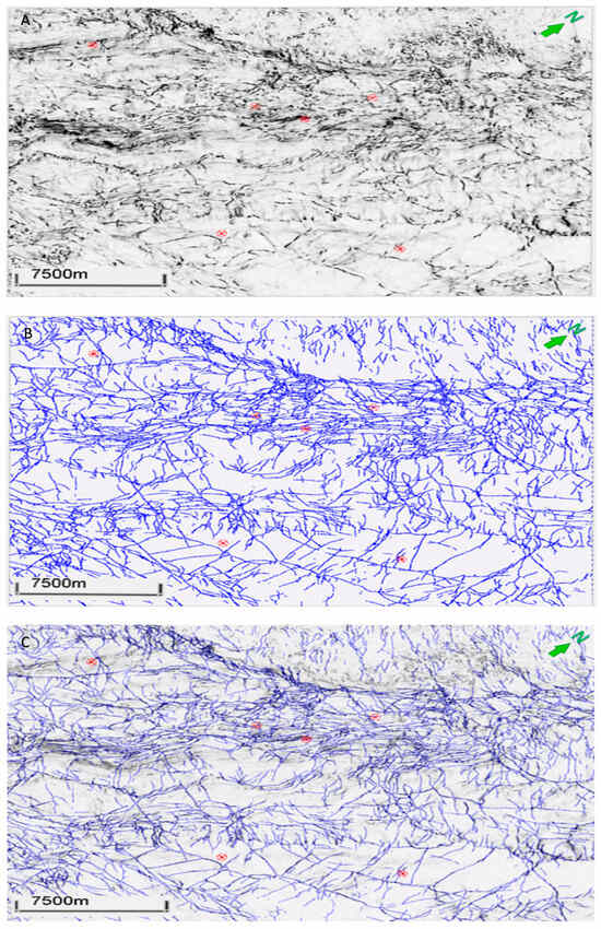 - Aqrawi, A.A.; Boe, T.H. Improved fault segmentation using a dip guided and modified 3D Sobel filter. In SEG Technical Program Expanded Abstracts 2011: Society of Exploration Geophysicists; Society of Exploration: London, UK, 2011; pp. 999–1003. [Google Scholar]