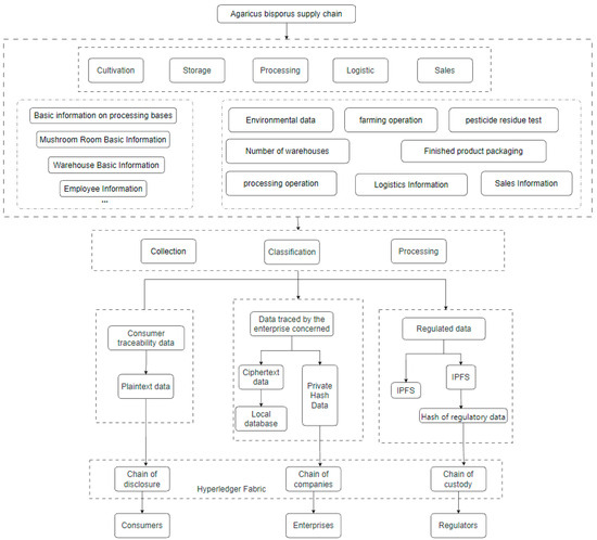 Agaricus bisporus supply chain based on an analysis of the requirements from consumers, enterprises, and regulatory authorities. The scalability and security of the model are also discussed. Additionally, a description of the flexible traceability process is provided, along with experimental validation. The discussion is presented in