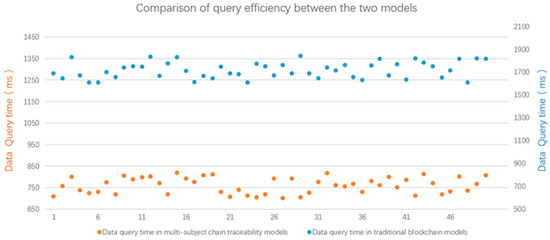 Through testing and comparing 50 sets of traceability data in both the traditional blockchain-based traceability model and the traceability model designed for traceability subjects, we empirically demonstrated a significant improvement in efficiency in favor of the traceability model tailored for traceability subjects. The results of the experimental simulation are presented in