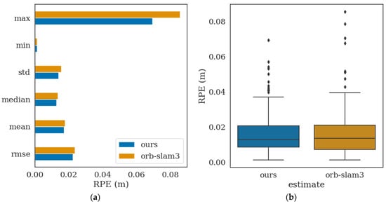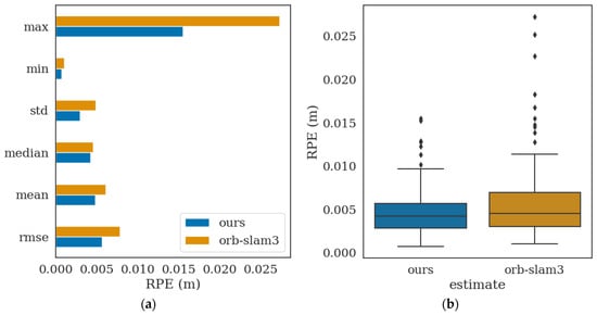Comparison of RPE of sequence fr1-desk2. (a) Histogram; (b) box diagram.