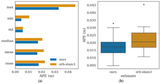 Comparison of APE of sequence fr1-desk2. (a) Histogram; (b) box diagram.