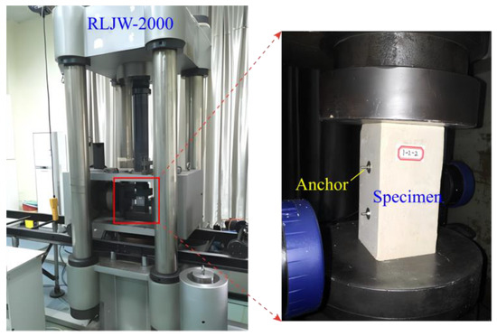 A RLJW-2000 microcomputer-controlled rheological experimental machine was used to carry out the rock unidirectional compression test, as shown in Figure 5. The data of the stress can be measured by the experimental machine by placing two micrometers at the diagonal of the chassis for measuring the axial deformation of the specimen. This test was loaded at the rate of 0.25 mm/min until the specimen completely loses the load-bearing capacity, and the results of the experiment were compared to analyze the effect of the anchor on the uniaxial compressive strength of the specimens of different types and the damage characteristics of the experimental program, as shown in Table 3.