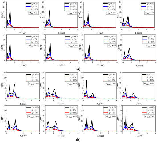 Values of CDAFs for (a) 5-story buildings and (b) 10-story buildings [33,34,71].
