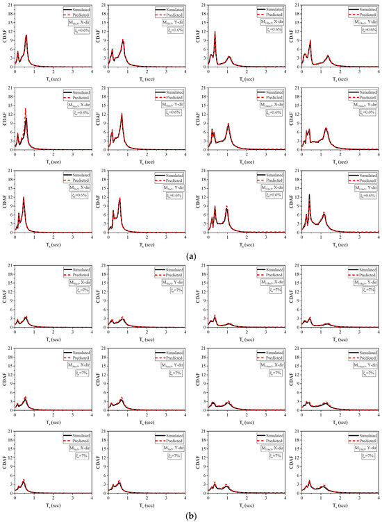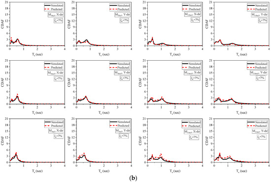 Simulated and ANN’s predicted CDAFs for (a) 5-story models and (b) 10-story models.