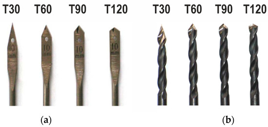 - Ispas, M.; Răcăşan, S. The influence of the tool point angle and feed rate on the dynamic parameters at drilling coated particleboard. Pro Ligno 2015, 11, 457–463. [Google Scholar]