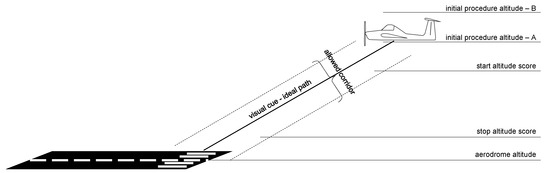 The final approach performance was assessed in terms of deviation, self-assessment of the deviations, and the approach quality. The approach quality was calculated as an objective score based on recorded kinematic data of the simulator. Kinematic data (e.g., altitude, speed, direction) were recorded for all test and training flights during the experiment. When deviation of airspeed and estimated touchdown point exceeded a certain threshold, a cumulative penalty was calculated during the approach. The approach quality was calculated by subtracting the penalty from the initial value of 100 (excellent approach). Therefore, the lower limit of the approach quality score was 0 (extremely poor approach).