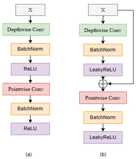 (a) Depthwise separable convolution. (b) Residual depthwise separable convolution.