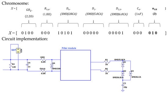As a consequence of the evolution of science and technology [], it is feasible to perform the evaluation of protection modules with the help of a genetic algorithm. It can be applied in various ways to design optimization of circuits. In paper [], GA is used to improve component location and routing. In addition, paper [] provides an instance of applying GA for the purpose of thermal analysis, which increases the environmental stability of the module. It is possible to find articles presenting the need to perform device operation simulation before testing [] in the relevant literature.