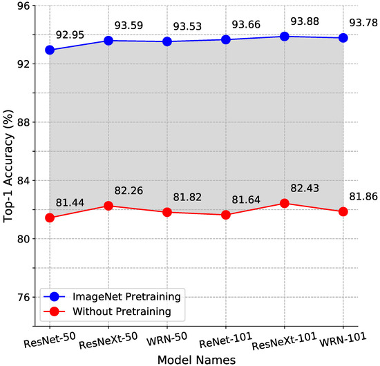 Comparison of classification accuracy with ImageNet pretraining and without ImageNet pretraining.