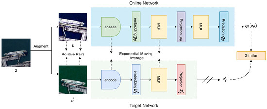 As shown in Figure 4, the target network provides the regression targets to train the online network, and its parameters are exponential moving averages of the online parameters . It achieves this goal by minimizing the L2 loss between the two representations and . During backpropagation, the target network is subjected to a stop-gradient operation. More specifically, after each training step, the following update is performed: