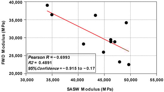 4.2. The Comparative Analysis of SASW Modulus and FWD Modulus