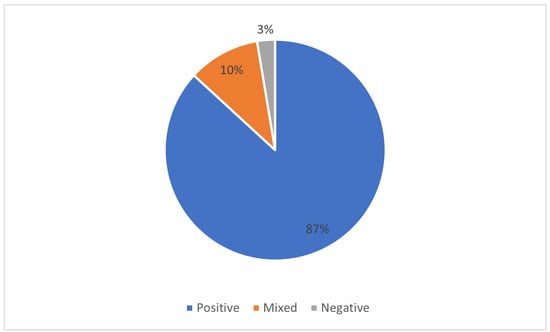 As shown in Figure 12, among the 38 papers that included the evaluation of machine learning/gamification applications, the vast majority (87%) reported positive results. Only 3% reported negative results, with the remainder reporting neutral or mixed results.