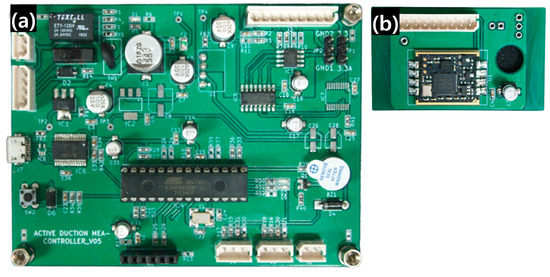 Photographs of the PCBs for the control (a) and sensing (b) units.