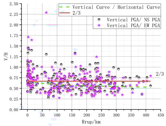 Scatter plot of vertical PGA to horizontal PGA ratio.