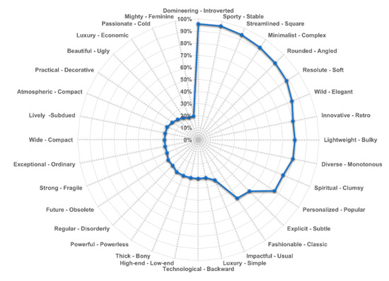 Emotional imagery refers to a specific image or feeling in line with inner expectations produced by the fusion of the Kansei attributes of a certain object and one’s own psychological cognitive state [1]. It is a deep-level consciousness activity of people’s emotional cognition [2]. In product modeling design, imagery refers to the emotional associations related to cognition conveyed through modeling elements. Specifically, the shape design of a product can convey a certain image through the combination and expression of various elements [3], such as fashion, dynamics, simplicity, comfort, etc.