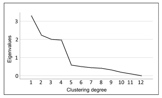 - Factor analysis: This method uses factor analysis to obtain a gravel map. Then, by observing the curve changes of the gravel map, it identifies the turning point where the difference in feature values within the group suddenly increases significantly in order to determine the appropriate number of clustering groups.