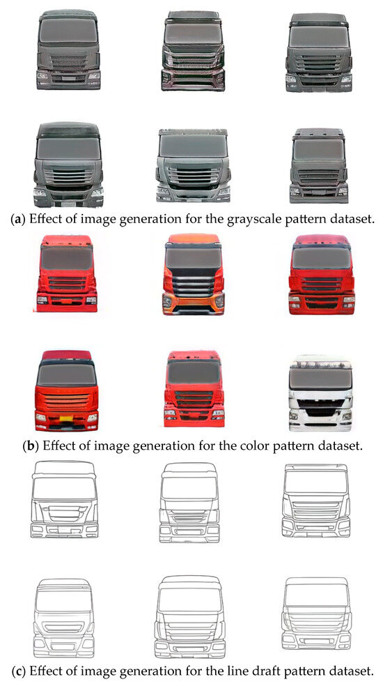 This article also explores an intelligent design method for truck front face shape driven by user emotional semantic vocabulary. This method is based on the Kansei Engineering theory and deep learning technology implementation. The specific experimental process includes building a truck front face dataset based on image pattern and imagery classification; comparing the generation effect of the deep convolutional generative adversarial network (DCGAN) and style-based generative adversarial network (StyleGAN2) through pre-experiments; designing a generative adversarial network model that meets the task requirements for the shortcomings in the experiments; debugging the network parameters and visualizing the training generative model; and outputting images and verifying the generation efficiency.