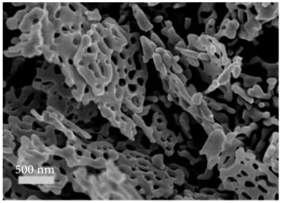 Hydrothermal synthesis is also used for the fabrication of two-dimensional materials like oxide nanosheets. It allows one to precisely control the size, morphology, and crystal structure of the nanosheets []. Images of porous ZnO nanosheets produced by the hydrothermal synthesis method are presented in Figure 3 []. The method has been widely used in nanotechnology to create structures for various applications including catalysts, photodeactivators, sensors, and energy storage devices [,,] as it has advantages such as ease of integration and control of the structure length []. However, it has disadvantages such as a longer growth period and reduced quality of the synthesized crystals. In addition, the arrangement of zinc oxide nanostructures produced using this method is closely related to the preferred orientation of the seed-layer crystals [].