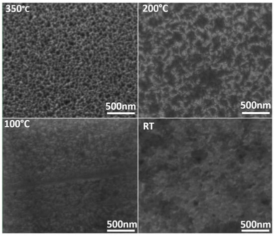 SEM images depicting ZnO thin films deposited at different temperatures: RT is Room Temperature [].