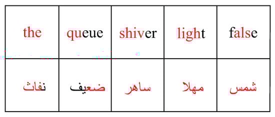 The most common bigrams in the English language present in the words selected in our dataset are listed in Table 2, with the corresponding most frequent bigrams in Arabic. The rank column indicates the rank of the bigram as measured by its frequency. As we only collect the overlapping characters, as highlighted in Figure 3, we denote the available bigrams in our dataset in Table 2 using an asterisk. Note that the dataset bigrams in English are more commonly used than the dataset bigrams in Arabic.