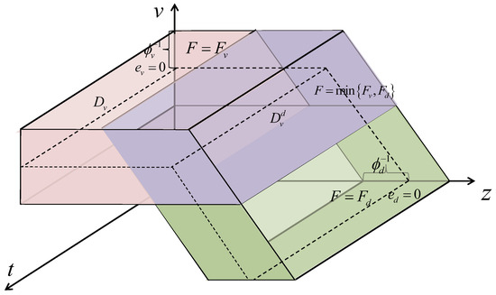 The problem of the integrated control algorithm for vehicle speed and distance can be summarized as follows: when , , ; when , . For this purpose, in the intersection area of speed- and distance-prescribed performance, i.e., , the control input is set as , see Figure 2.