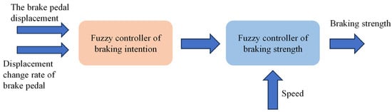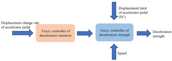 The status of the accelerator pedal can reflect braking demand to a certain extent. The deceleration intentions are divided into mild deceleration intention, moderate deceleration intention, and strong deceleration intention. It is easy to misjudge whether to decelerate only on the displacement change rate of accelerator pedal, so the accelerator pedal displacement limit is introduced which is defined as Sf. When it is less than the limit value Sf, the driver’s intention is judged as deceleration braking. The identification process is shown in Figure 2.