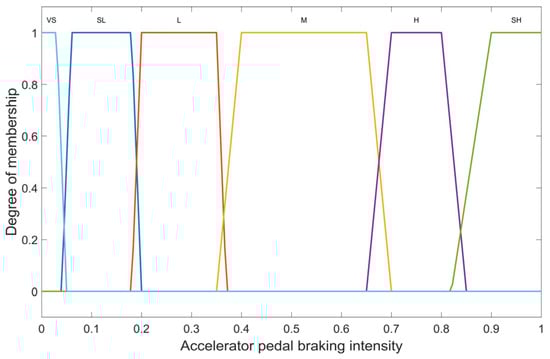 The raise speed of the accelerator pedal represents the driver’s intention to decelerate, so the deceleration intention fuzzy rules are formulated combined with the raised speed of the accelerator pedal as shown in Table 2.