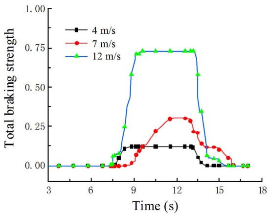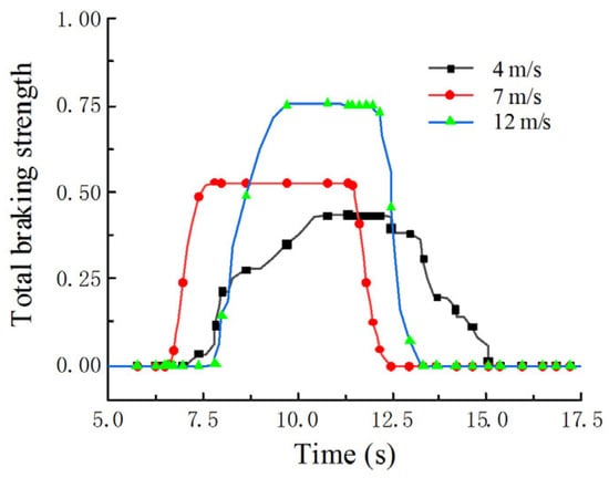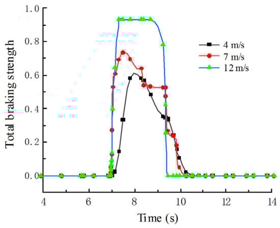 Braking strength under different speeds. (a) 2 m/s. (b) 6 m/s. (c) 12 m/s.