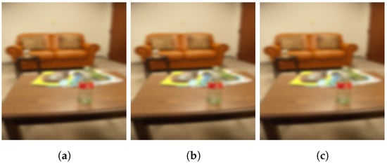 Images of lens blur without denoising and denoising with median and Gaussian filter for CURE-OR dataset. (a) Without filter. (b) After median filter. (c) After Gaussian filter.