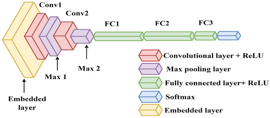 As per [18], Figure 6 shows that the CNN model contains two convolutional and pooling layers followed by three fully connected layers. A filtering layer can be incorporated in any position of the CNN model but before the Softmax layer. However, in Figure 6 we embed an extra denoising layer of Gaussian or median filter, which is the first layer in the existing CNN model. This layer is embedded before the first convolutional layer of the CNN model. More embedded layers of Gaussian and median filters could be added to the CNN model. However, based on our experiments, we opted for only one embedded layer because the traffic sign and object recognition accuracy are almost the same as with embedding the first layer. Additionally, adding more filtering layers raises the computational complexity of the CNN model.