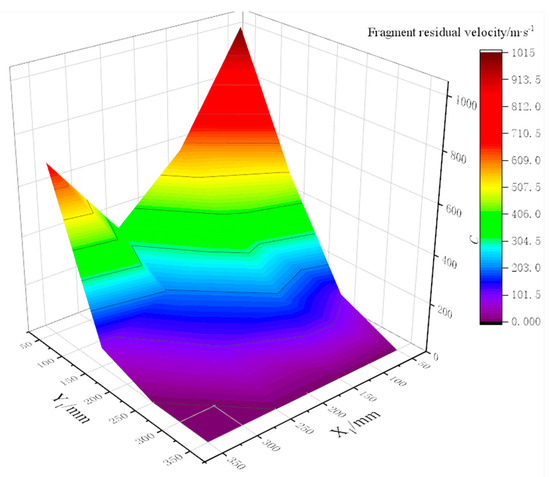 Changes in residual velocity of fragments with horizontal and vertical distances.