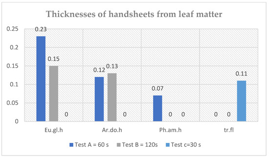 | Plant Matter | PFI (s) | Drainability (°SR) | Grammage (g/m2) | Thickness (μm) | Specific Density (g/cm3) | Specific Volume (cm3/g) | Gurley 300 cm3 (s) | Air Permeability (μm/(Pa·s)) | |