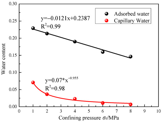 - Under the actin of high stress, the of low- and high-confined water both decreased with an increasing . The under an of 1 MPa was obviously greater than that under a high . When the of the sample was greater than 4 MPa, the under low and high pressure was less than , and the relationship between the and satisfied a power function.